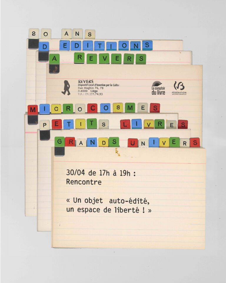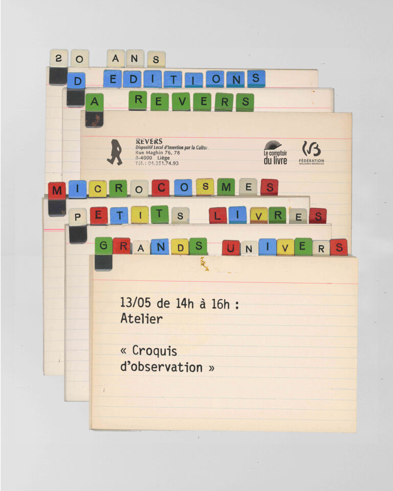 23/04/2026 > 23/05/2026 « MICROCOSMES : petits livres, grands univers » 20 ans d’éditions à Revers EXPO LECTURES RENCONTRES ATELIERS RADIO… Lire la suite