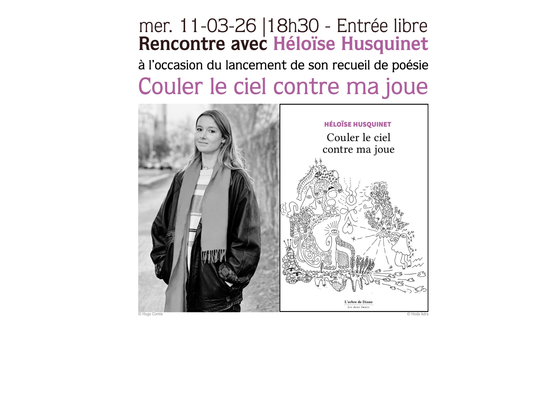 Le 11 mars 2026, venez fêter le lancement de Couler le ciel contre ma joue, le premier recueil de poésie d’Héloïse Husquinet publié aux éditions l’arbre de Diane.
