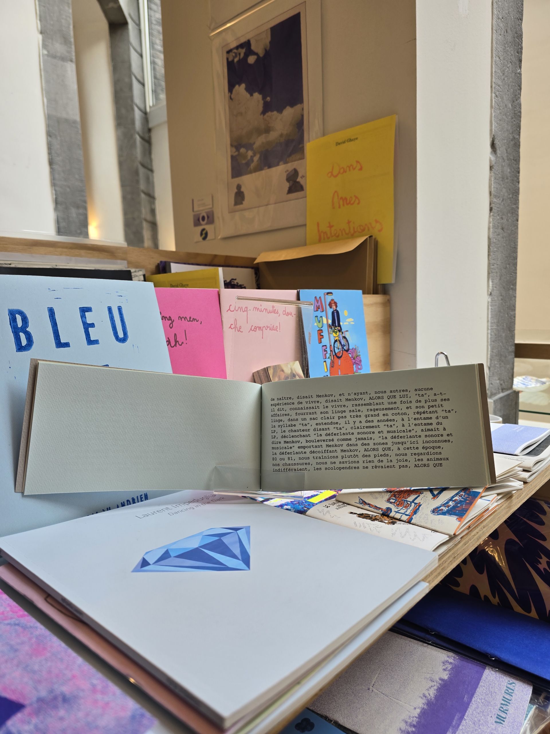 Édité par : L'Âne qui butine Genre : Récit... PARCE QUE il ne mettait pas la main sur le beurre ALORS QUE il avait clairement vu... ... magiquement disparu, emporté par une entité céleste ou quelque chose du genre... ... le chanteur disant “ta”, clairement “ta”, à l'entame du LP, déclenchant... 33 exemplaires. Reliure main, couture à la japonaise. Papiers : couverture : Strathmore : Deep gray, Bugra Brique titre ; intérieur : Strathmore Pastelle Moka, texte Pastelle Aqua, photo Ivory.