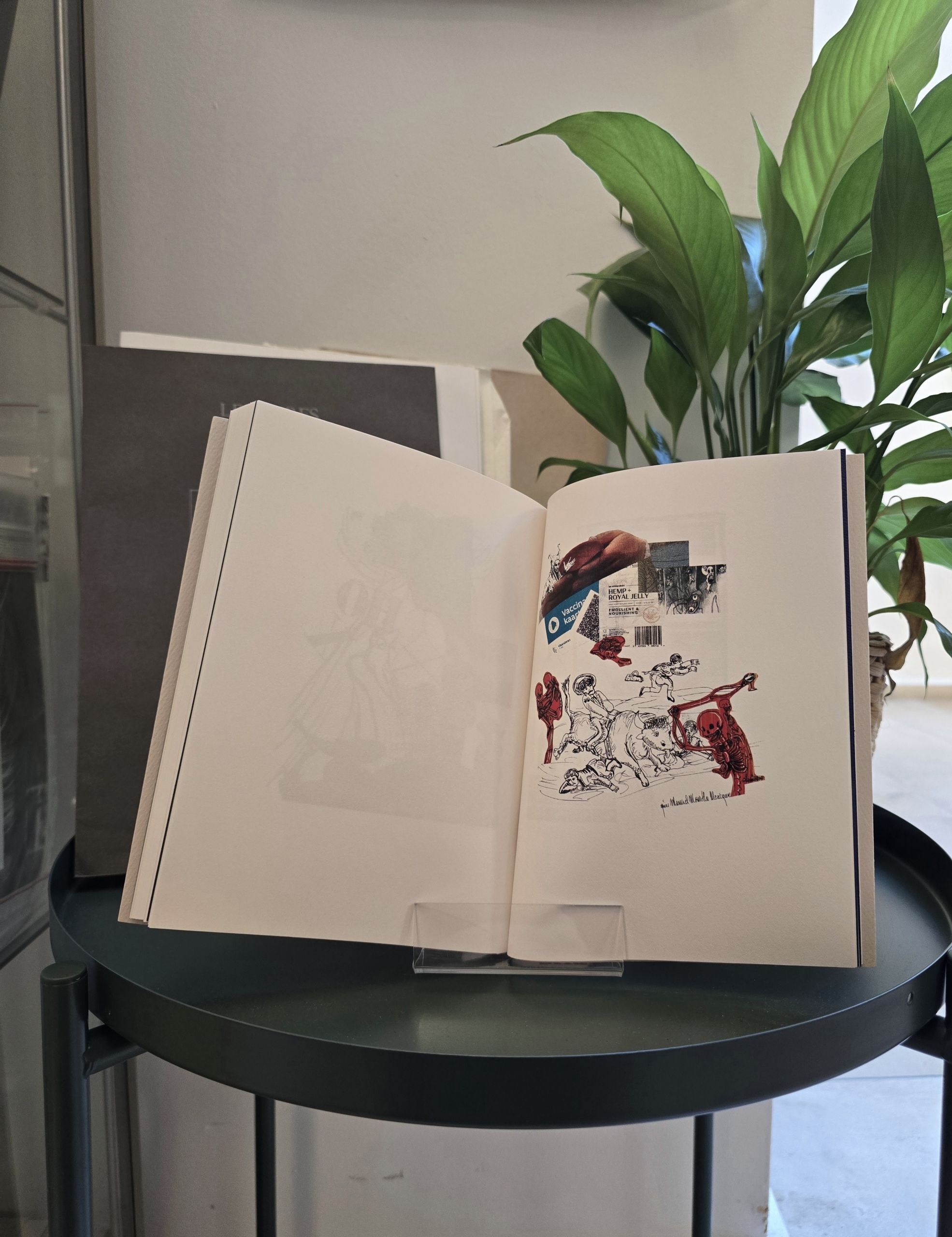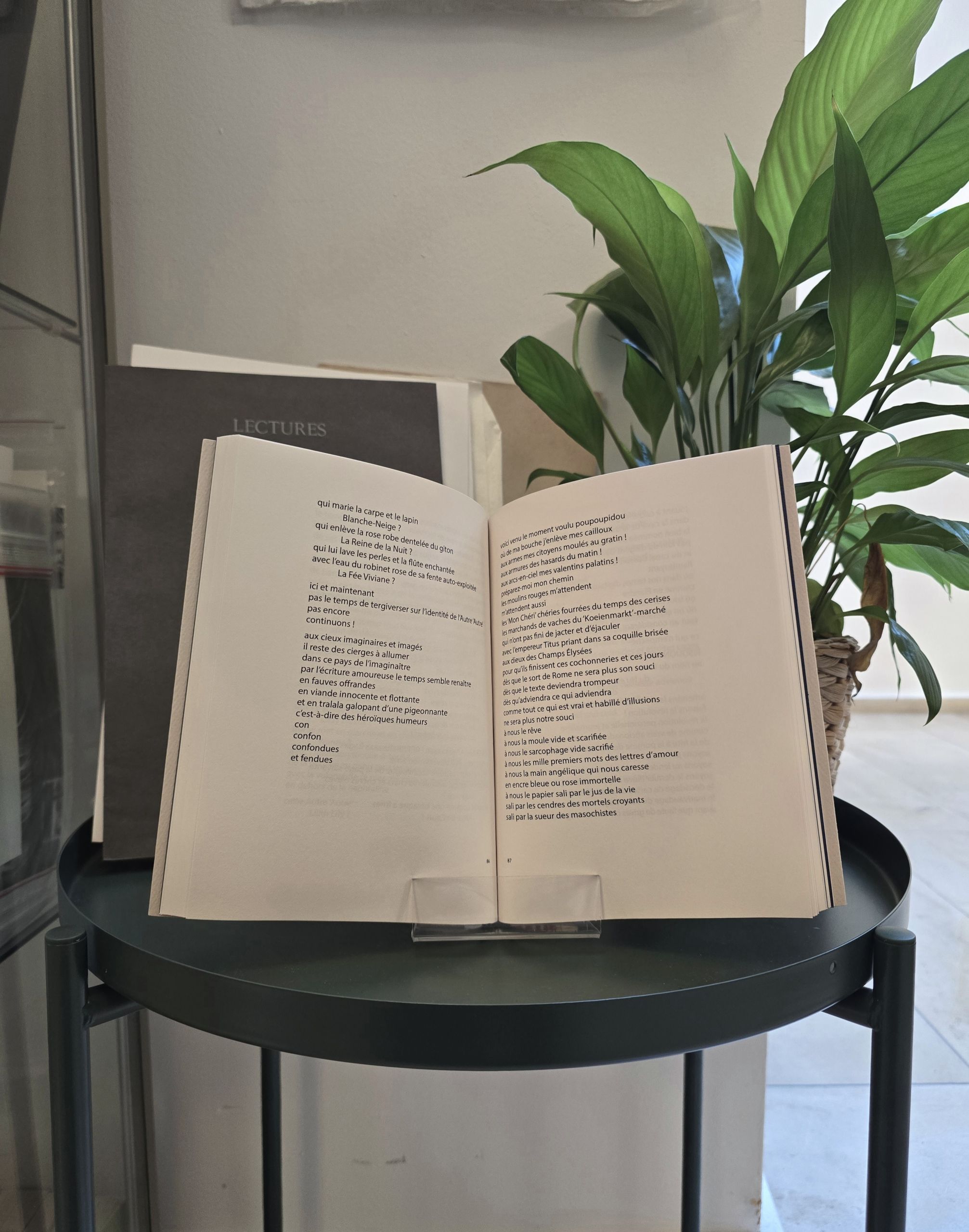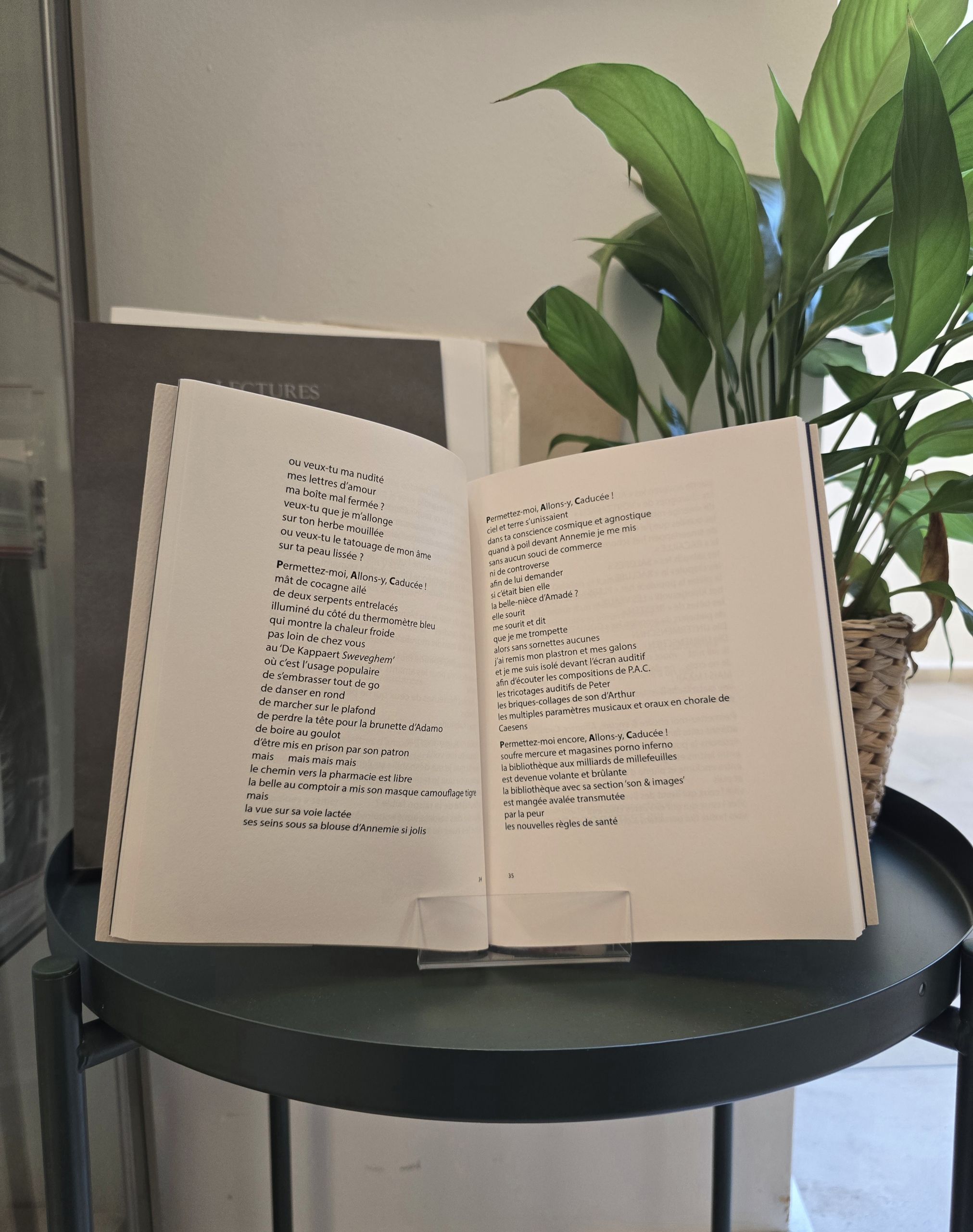 Édité par : L'Âne qui butine Genre : PoésieLa puissance émotionnelle, nue, non pas comme au premier jour, mais sortie d’un sauna de vocabulaire, affleure la prouesse de ces deux écrivains. Père Ubu n’aurait en rien renié ces deux hurluberlus d’écrivains qui jouent et se jouent des codes et des modes littéraires pour créer une œuvre breughélienne à souhait. Sans oublier Alice qui n’aurait pas hésité à faire une halte en leur pays merveilleux de mots et d’images, pour partager une tasse de thé avec cette paire d’énergumènes. Lire Bruneel et Vandenbroucke c’est avaler le large à pleins poumons pour mieux respirer leur verve rabelaisienne ! Et comme ça fait du bien de les lire ! Les auteur.es amphisbènes écrivent sur le sujet de leur choix, en croisant leurs textes ou en parallèle, créent en cadavre exquis 7 illustrations quadri, calligraphient sur chaque couverture, aux feutres acryliques, titre, nom et prénom, et rédigent la 4e de couverture : 3 phrases, pas une de plus, qui commencent obligatoirement par ça. (chaque ouvrage de cette collection est donc unique) Autre particularité : chaque titre propose une recette originale, et sa photo, inspirée par le texte-duo. Chaque ouvrage est imprimé, relié main, numéroté. Tout est made in Belgique. Format ouvert : L 470 x H 193 mm, fermé : L 152 x H 193 x 10 mm. Couverture à rabats. Papiers utilisés : couverture Strathmore, intérieur Bamboo, simili cuir bleu/gris V.D.B. 164 pages, dont 7 illustrations quadri. 317 exemplaires numérotés.